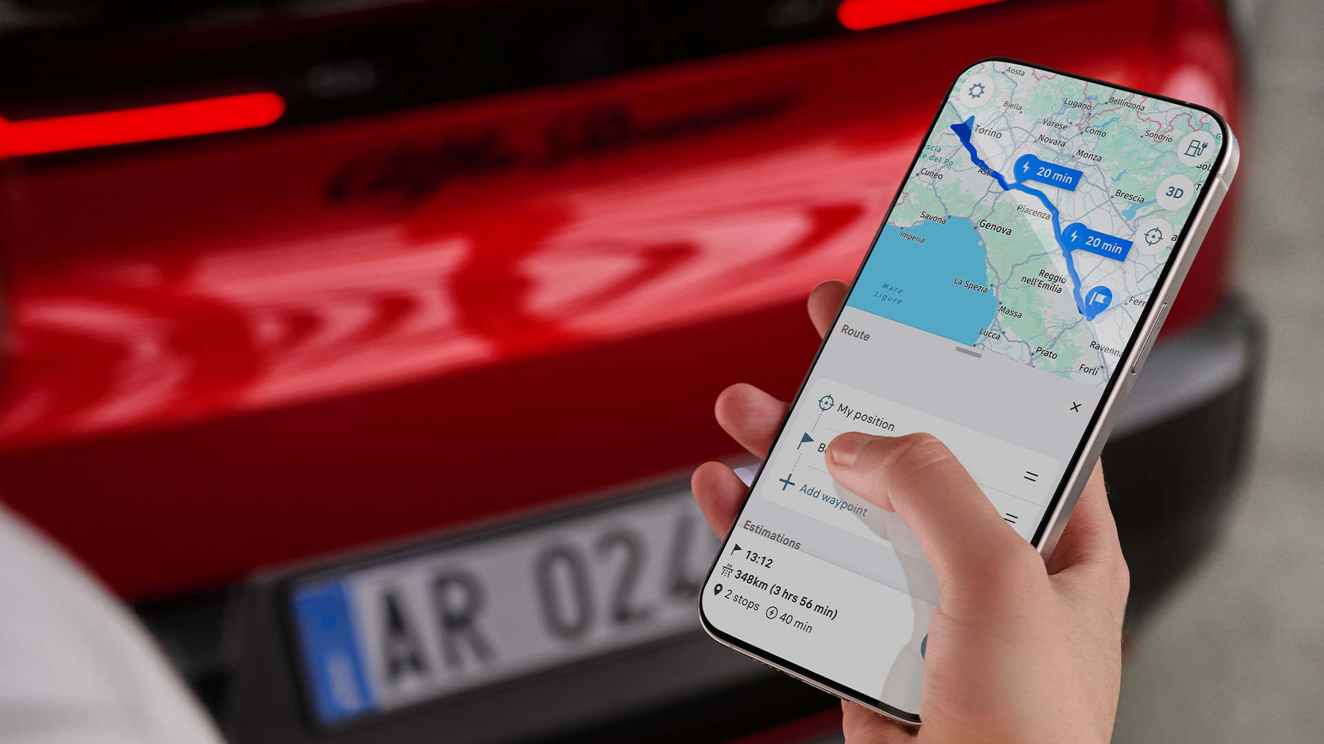 Con la app My Alfa Connect, accede a todos los servicios conectados de tu Alfa Romeo. Puedes planificar tu próximo viaje considerando el alcance disponible alrededor de tu ubicación y encontrar la estación de carga más cercana. Además, puedes acceder fácilmente a la app Free2move Charge y gestionar tu wall box en casa de manera remota.